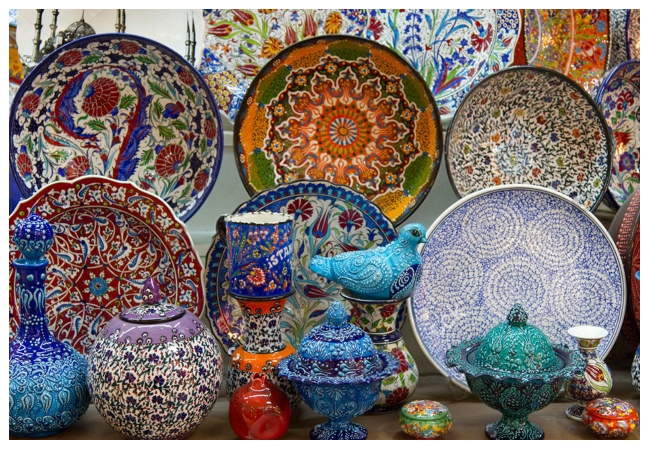 إن السيراميك التركي، المشهور بألوانه الغنية وتصميماته المتقنة والمعروف باسم "إيزنيك"، متاح للبيع في إسطنبول بأسعار مناسبة للجميع، فقد صنعه الحرفيون في الأناضول تقليدًا للفخار الصيني، لكنهم استطاعوا تطوير نمطهم الخاص.