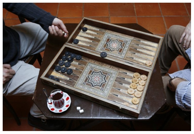 في كل ركن من مقاهي اسطنبول تقريبًا، يمكنك أن ترى رجالًا يلعبون لعبة الطاولة، وهناك العديد من الأكشاك التي تبيع مجموعات مصنوعة يدويًا تجمع بين الصدف والأخشاب المختلفة في فسيفساء رائعة.