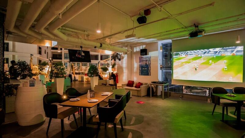 استمتعوا بالنكهات الغنية من قائمة الأطباق الرائعة والتي تضم عددًا من خيارات الأطباق المتوسطية، فيما تعيشون أجواء المرح وتشجيع فريقكم المفضل. كما يستمتع الضيوف بالمشروبات المنعشة والشيشة المميزة بالنكهة التي يختارونها من مجموعة النكهات الفريدة المتاحة.