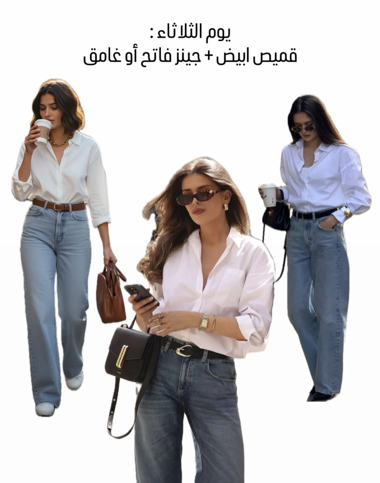 - استخدمي الإكسسوارات بشكل خفيف مثل ساعة أنيقة أو أقراط صغيرة لإضافة لمسة أنثوية دون ازدحام.