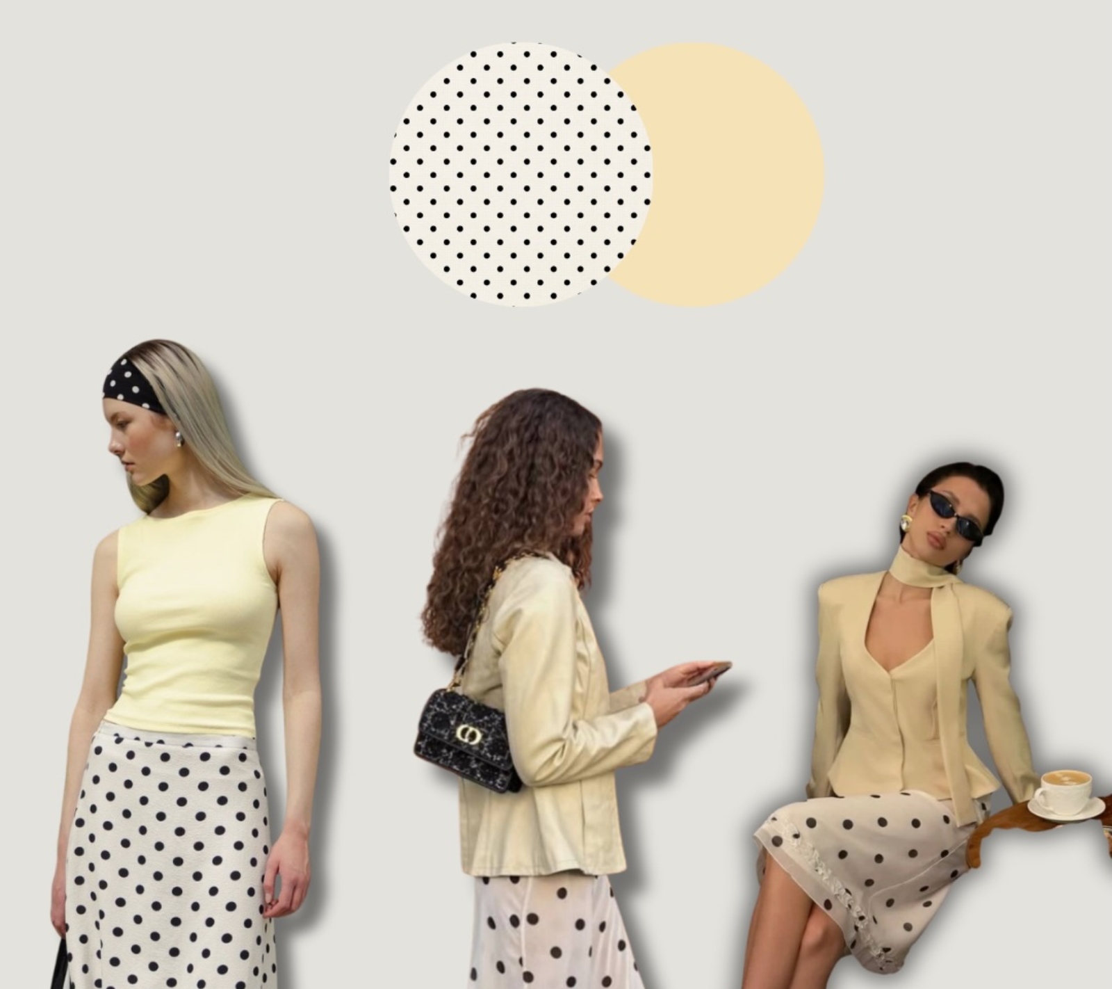 لأن البولكا دوت نقشة لافتة، يفضّل تنسيقها مع قطع بلون واحد لتفادي الزحمة البصرية والحفاظ على التوازن.