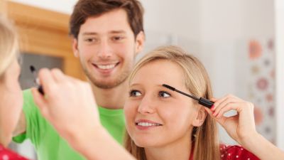 من الغريب أن نرى أن بعض الرجال يحبون مشاهدة زوجاتهم وهن يضعن مستحضرات التجميل، وخاصة أنهم يشتكون دائمًا من إضاعتهن وقت طويل في تلك المهمة، وليس معروفًا السبب الحقيقي وراء ذلك.