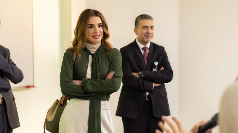 تألقت الملكة رانيا مساء أمس بإطلالة عملية راقية خلال زيارتها للجامعة الأردنية ومشاركتها في احتفالات الذكرى العشرين للجمعية الملكية للتوعية الصحية.