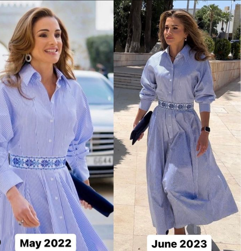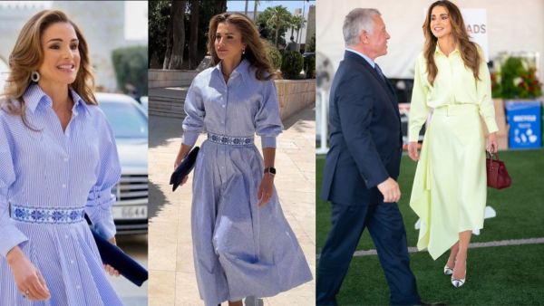 لطالما أبهرتنا الملكة رانيا العبدالله بإطلالة الفستان الأزرق السماوي الملكي من علامة الأزياء الأميريكية، براندون ماكسويل، حيث خطفت الأنظار بفستان مميز بقصة الفستان القميص أو ال(Shirt Dress) الملكي والفاخر، حيث اختارته أيضا بنقشات التقليمات العامودية الأنيقة، وميزته أيضا بحزام مطرز من وحي التطاريز الشرقية العربية.
