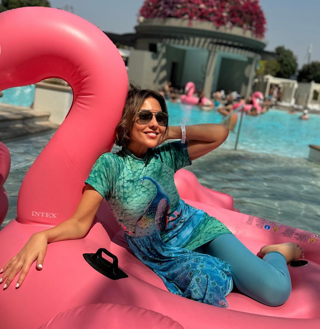 ونشرت مي كساب في الساعات الأخيرة صورة لها وهي ترتدي ال"بوريكيني" باللون الأزرق خلال نزهة بحرية لها، وظهرت كذلك بنحافة لافتة حيث اشاد الجمهور بإطلالتها الجديدة.