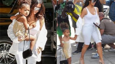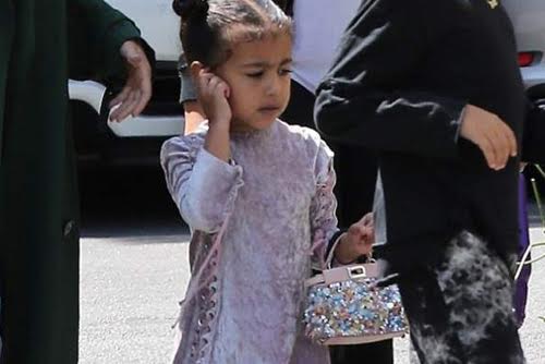 رصدت عدسات المصورين نجمة تلفزيون الواقع كيم كاردشيان وهي متجهة مع ابنتها نورث إلى الكنيسة وظهرت الطفلة المدللة بالصور مرتدية فستان مخملي اللون وتمسك بيدها حقيبة من دار فندي الشهيرة يقدر ثمنها بـ 5000 دولار أميركي.