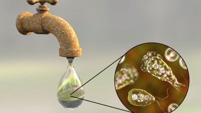 مرض الأميبا آكلة الدماغ منتشر بشكل كبير في الأنها والبحيرات، وتصيب الإنسان فقط إذا دخل الماء جسده عن طريق الأنف، تتغدى على أنسجة الدماغ البشرية وتتلفه