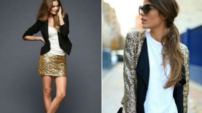 • نسقي تنورة قصيرة ملتفة باللون الذهبي اللامع، مع تيشيرت بيضاء بسيطة وسترة سوداء للمشاوير الصباحية أو لميعاد رومانسي أول.