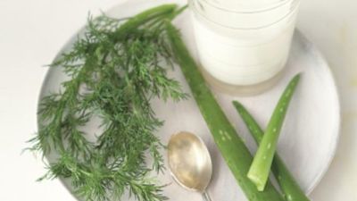 تقول جانيس كوكس، مؤلفة كتاب Natural Beauty at Home، يساعد الشبت والحليب والصبار في هذه الوصفة على التخلص من الجلد الميت. والشبت مناسب لكل انواع البشرة.