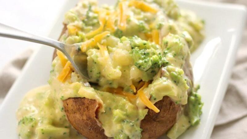 البطاطا مشوية مع البروكلي، وجبة عشاء نباتية سهلة تستخدم مكونات بسيطة لعمل وجبة لذيذة.