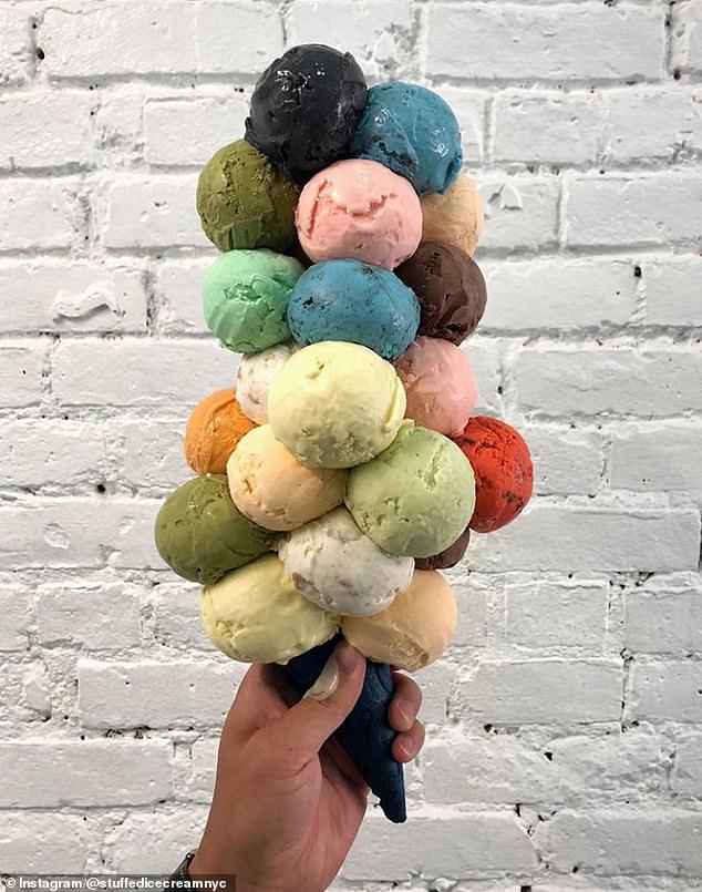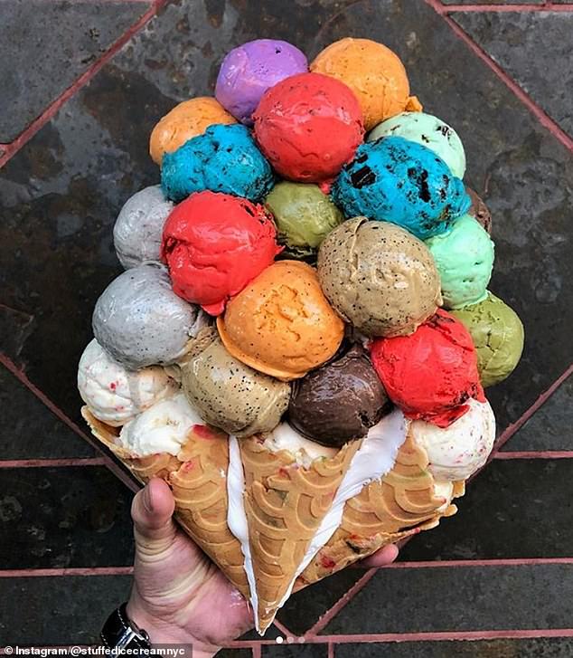 ويتفاجأ العملاء بتمكن أصحاب المتجر من تثبت 20 مغرفة دفعة واحدة في مخروط بسكويت واحد دون أن يسقط شيئا، وتظهر الصور الرائعة على “إنستقرام” باقات مختلفة وأشكال متعددة للمجموعة الرائعة من النكهات.