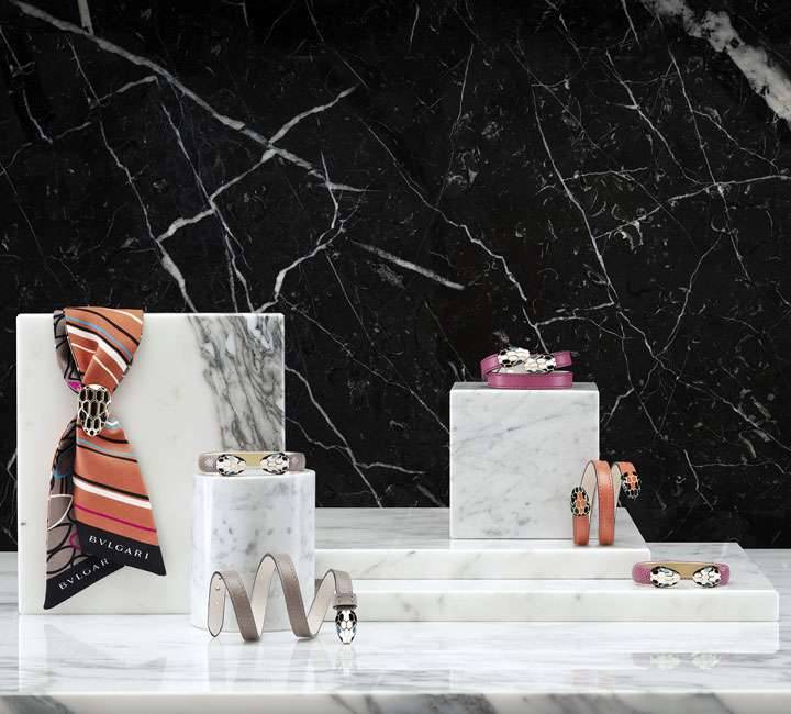 لقد أطلقت دار بولغاري مجموعة سربنتي وتضم محفظات نقود وحقائب ومجوهرات راقية من جلد الأفعى وكانت الدار اول من استعان بالأفعى ليصمم منها ساعات مجوهرة راقية فأطلقت الدار في العام 1944 ساعة على شكل افعى من الذهب الخالص ونوعت لاحقاً في المواد فمن الذهب الأصفر انتقلت الدار الى الذهب الأبيض والبلاتين ورصعتها بالماس في فترة لاحقاً وبالياقوت الأحمر او الروبليت مكان عين الأفعى.