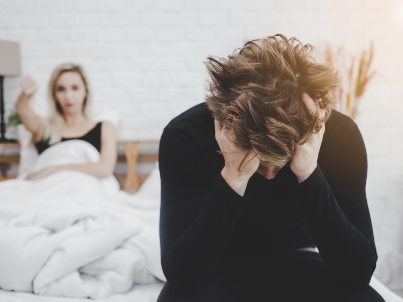 - تأثير نفسي مثل الإحباط والضيق وتجنب الأوضاع الحميمة.