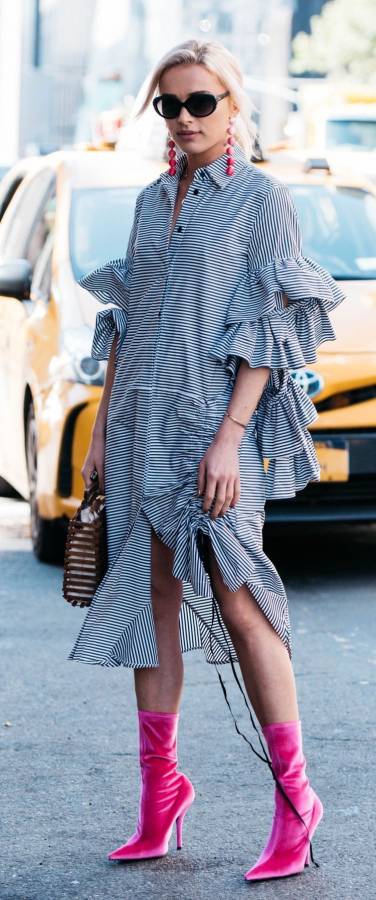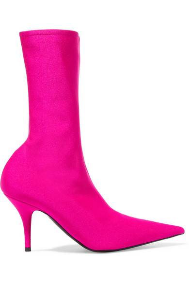 تبارت في شوارع الموضة التي عرفتها عواصم الأزياء العالمية، النجمات وعاشقات الموضة، في اعتماد صيحة حذاء “بالنسياغا” الذي يصل طوله إلى الكاحل، وهو مصنوع من قماش مطاطي بلون الفوشيا الملفت، ويبلغ ثمن التصميم نحو 1,110 دولار أميركي.