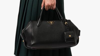 صنعت من جلد العجل وهي مصممة بألوان صلبة، مما يجعلها حقيبة يومية مثالية. النظرة العامة لها كلاسيكية والشكل يمكن أن يتطابق بسهولة مع العديد من الازياء. الواجهة الامامية تبدو ناعمة مع شعار المثلث المشهور وتوقيع برادا. يكمن جمال هذه الحقيبة في الواقع في الأعلى والجانبين – حيث السحاب الممتد من اول الى اخر الحقيبة.