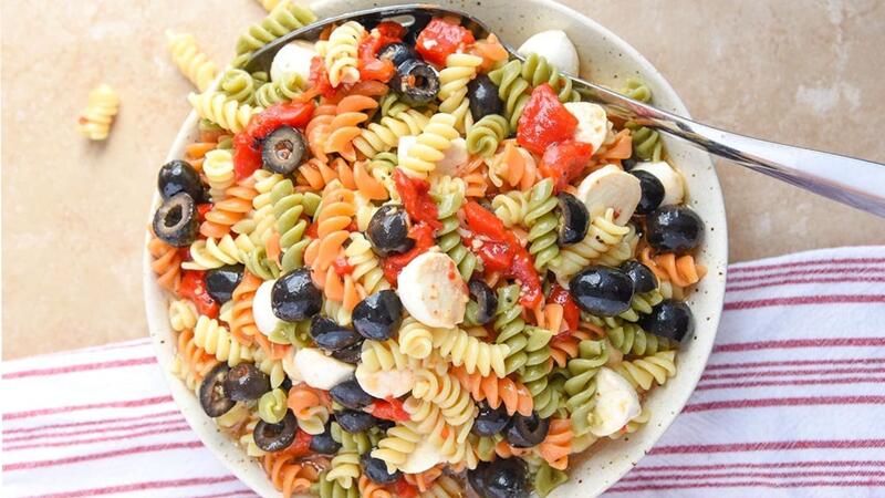 سلطة باستا سريعة وسهلة تعتبر رائعة للنزهات الربيعية أو كطبق جانبي للعائلة والأصدقاء.