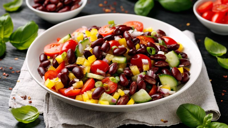 تعتبر سلطة الفاصوليا الحمراء وصفة صحية ومشبعة، مليئة بالفيتامينات والمعادن التي يحتاجها الجسم، خيارًا مثاليًا للرجيم، إذ تحتوي على نسبة عالية من الألياف، البروتين، والحديد، لتدعم الشعور بالشبع وتعزز الصحة العامة. حضّري هذه السلطة اللذيذة وقدميها بجانب الدجاج المشوي لإضافة طعم مميز ووجبة متكاملة ومغذية في أي وقت من السنة.
