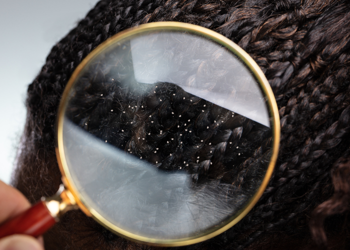 - وجود القمل في فروة الرأس، أو الجسم، أو الملابس، أو العانة، أو شعر الجسم في مناطق أخرى.