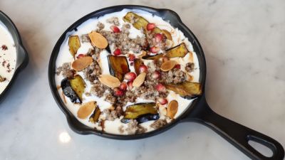 فتة المكدوس بدبس الرمان