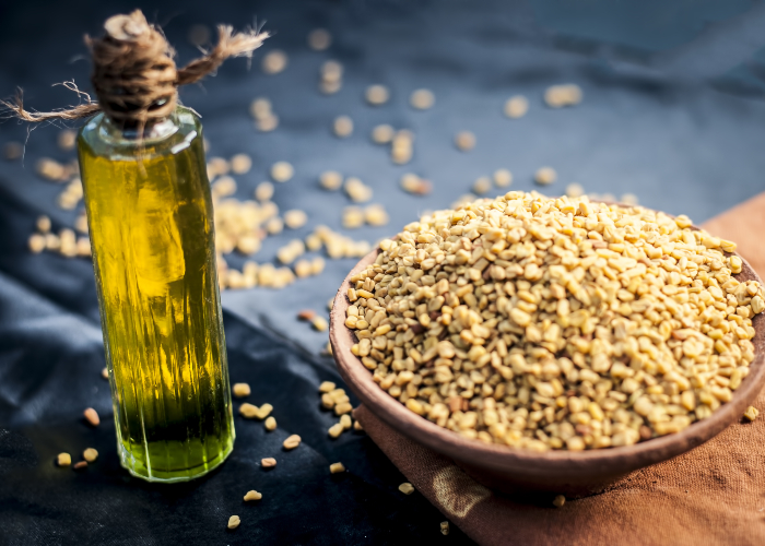 - يضمن زيت الحلبة صفاء البشرة ونقائها بفعل مضادات الأكسدة.