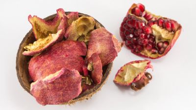 - قشر الرمان يحمي من سرطان الجلد، ويحارب علامات الشيخوخة المبكرة؛ كالتجاعيد والخطوط البيضاء.