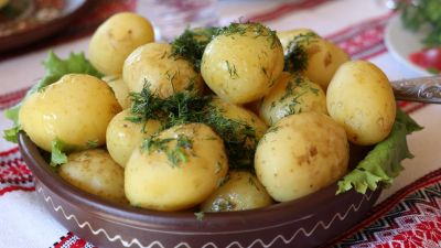 4 بطاطا متوسطة الحجم مسلوقة ومهروسة