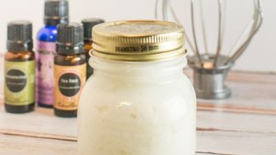 باستخدام خفاقة يدوية، تضاف الزيوت الأساسية الى الزبدة وتخلط جيدا. ينقل الخليط إلى جرة زجاجية صغيرة ويخزن بدرجة حرارة الغرفة. يستخدم على الساقين بعد الاستحمام والتقشير.