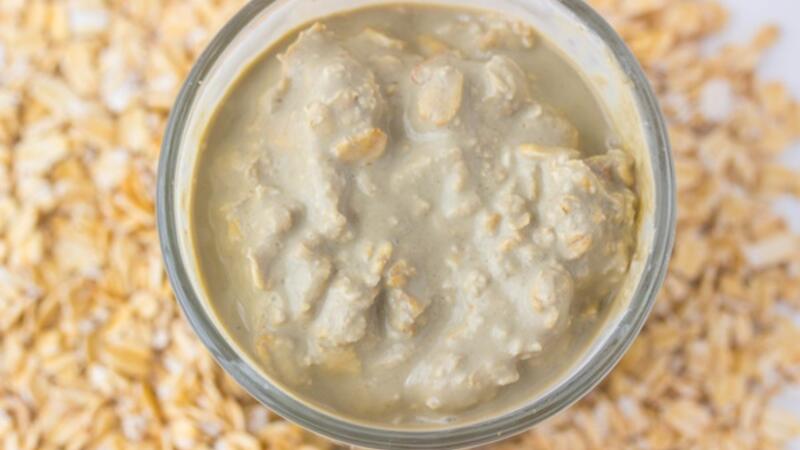 في وعاء صغير يمزج الطين والشوفان معا جيدا، الى ذلك يضاف الزيت والماء ويخلط بالملعقة حتى يصبح الخليط عجينة سميكة.