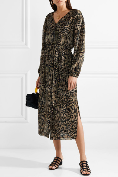 أو فستان من ماركة Ganni مزيّن بالكشاكش مع جزمة قصيرة بيضاء، ومن الممكن التركيز على الأكسسوارات كحزام Maison Moinet أو حذاء مفتوح من الخلف من توقيع Dune London أو اختيار قبعة من القش مزيّنة بقماش مطبّع بنقشة الفهد لدى Zara أو اختيار جزدان مربع مع مسكة صغيرة منفّذ بجلد الفهد من توقيع Gucci أو اختيار سترة مزيّنة بنقشة الفهد من توقيع Other Stories قد تلفتنا أيضا قطع ملابس مطبعة بنقشة الفهد انما بالأبيض والأسود.