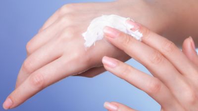 - جفّفي يديك وضعي كريم مرطب.