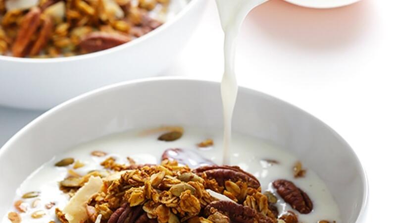 وصفة الجرانولا باليقطين هذه مصنوعة من هريس اليقطين الحقيقي ومحلاة بشراب القيقب، وهي شهية بالفعل!