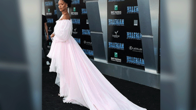 ما رأيك بإطلالة ريهانا في العرض الأول لفيم Valerian هل ناسبها اللون الوردي؟