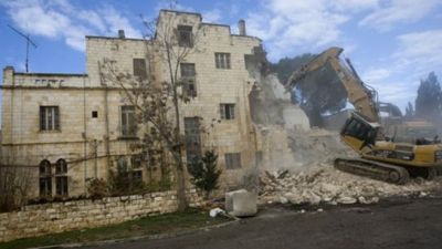 وفي حي الشيخ جراح بالقدس الذي تقطنه اغلبية عربية هدمت الجرافات الفندق الذي بني في الثلاثينات ليكون منزل الحاج أمين الحسيني مفتي القدس الذي حارب القوات البريطانية والصهيونية وأصبح حليفا للزعيم النازي الالماني أدولف هتلر في الحرب العالمية الثانية.