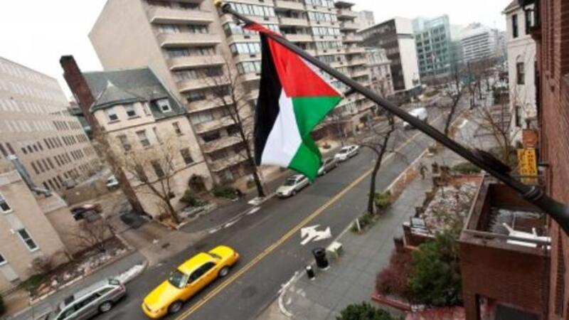 رفع رئيس بعثة منظمة التحرير الفلسطينية في واشنطن، السفير معن رشيد عريقات، امس العلم الفلسطيني رسميا على مقر المفوضية العامة لمنظمة التحرير الفلسطينية في واشنطن، وذلك للمرة الأولى في تاريخ عمل المنظمة في الولايات المتحدة.