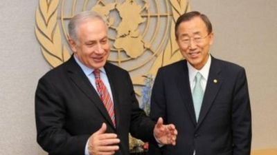 نتاناياهو خلال لقائه امين عام الامم المتحدة بان كي مون في نيويورك