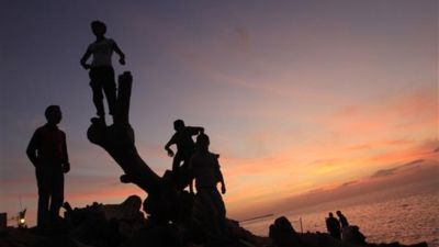 أطفال في غزة يلهون فوق الدمار/أرشيف