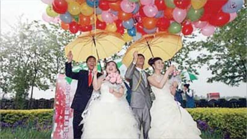 أقام عريسان وعروسان صينيون حفل زفافهم في مقبرة ليؤكدوا بذلك على أن لا شيء سوى الموت سيفرق بين كل اثنين منهم.