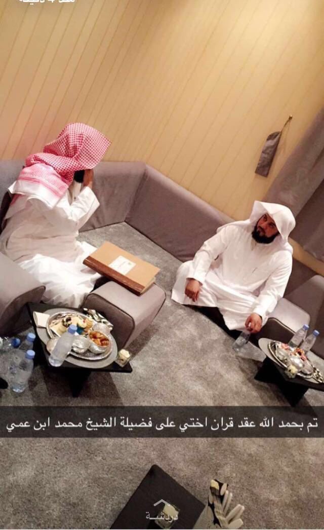 انتشرت عبر مواقع التواصل الاجتماعي صورة قيل انها من زفاف الداعية الشيخ محمد العريفي على ابنة عمه ولم يصدر حتى الان اي بيان رسمي من الداعية لتوضيح حقيقة الخبر .
