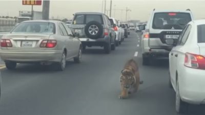 وكان رواد مواقع التواصل الإجتماعي قد نشروا فيديو لنمر يتجول بين السيارات في أحد شوارع الدوحة . ويظهر الفيديو الذي لم يتجاوز الدقيقة نمرا يمشي في الشارع فيما كانت السيارات تقف في ازدحام مروري ، ونشر أحد المغردين صور.