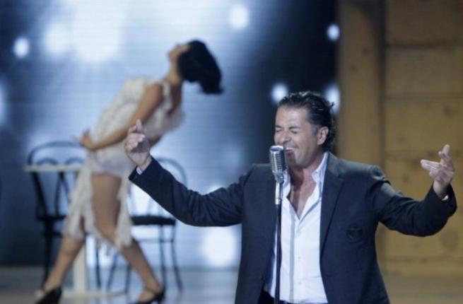 المغني اللبناني راغب علامة يؤدي أغنية خلال حفل اختيار ملكة جمال لبنان لعام ٢٠١١.