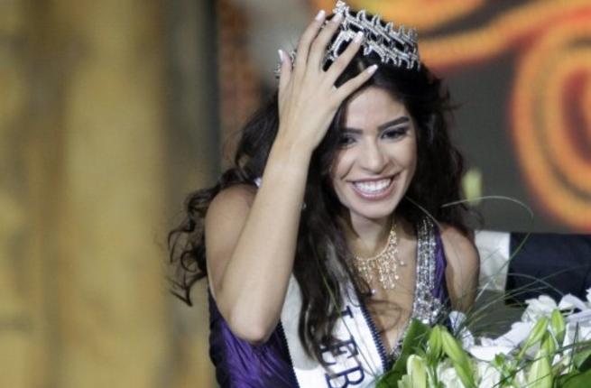 يارا خوري لحظة إعلان نبأ فوزها بلقب ملكة جمال لبنان ٢٠١١.
