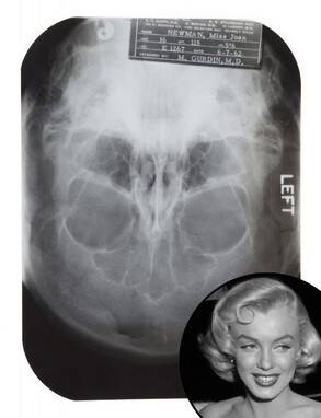 من أكثر الأشياء الغريبة لمارلين مونرو التي تم بيعها في المزاد العلني هو اشعة سينية اجرتها يعود تاريخها إلى عام 1954 مقابل 45.000 دولار.
