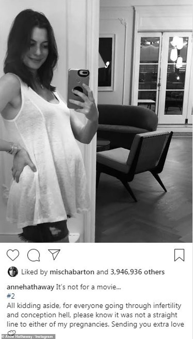ونشرت آن وقتها صورةً لها بالأبيض والأسود وهي تضع يدها على ظهرها، وعلّقت: "لكل من يعاني من العقم أتمنى أن يصبح الخط مستقيم للجميع.. كل الحب لكم".