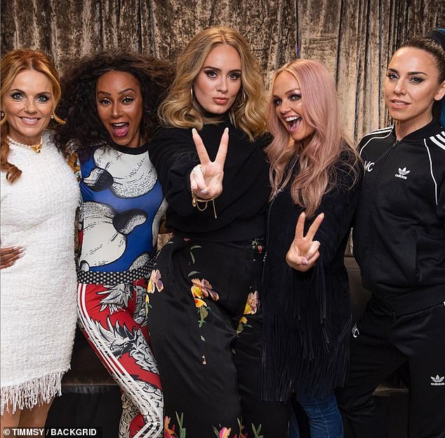 وخلال الموعد النهائي لجولة فرقة "سبايسي جيرل" في لندن، من مساء يوم السبت، ظهرت أديل بإطلالة رائعة تملؤها الثقة، في فيديو كانت تصوره مع النجمات وهن يرقصن في الممرات، حيث انتقلت بعد ذلك لمقطع آخر لنفسها وهي تغني في السيارة في طريقها للحفلة.