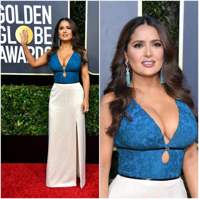 أسوأ إطلالات النجمات في حفل غولدن غلوب.. سلمى حايك معصورة بفستانها الضيِّق! (صور)