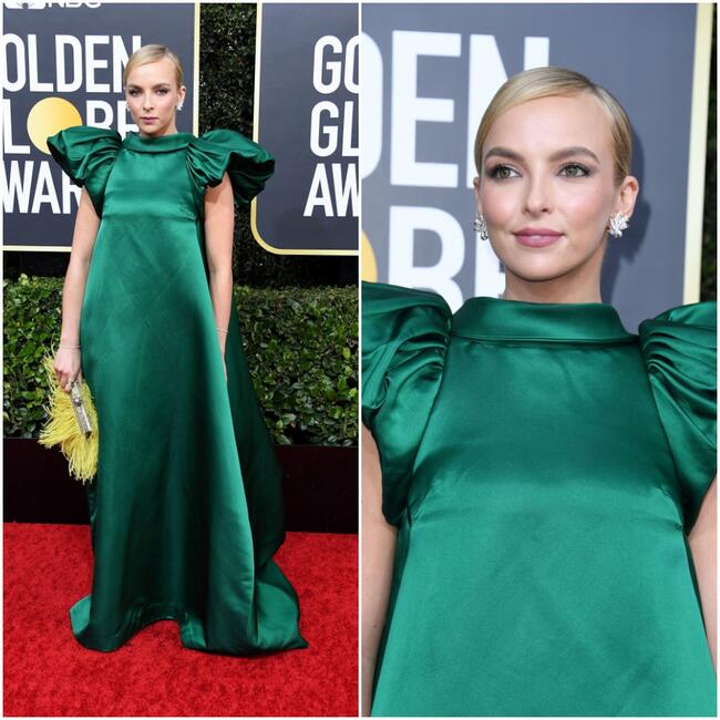 لا يمكننا تصوُّر الفكرة من إطلالة الممثلة البريطانية بتوقيع مصممة الأزياء "ماري كاترانزو"، حيث اختارت ارتداء فستان طويل من الساتان جاء بقصة غريبة ناحية الصدر ما منحها نوعًا من الغرابة.