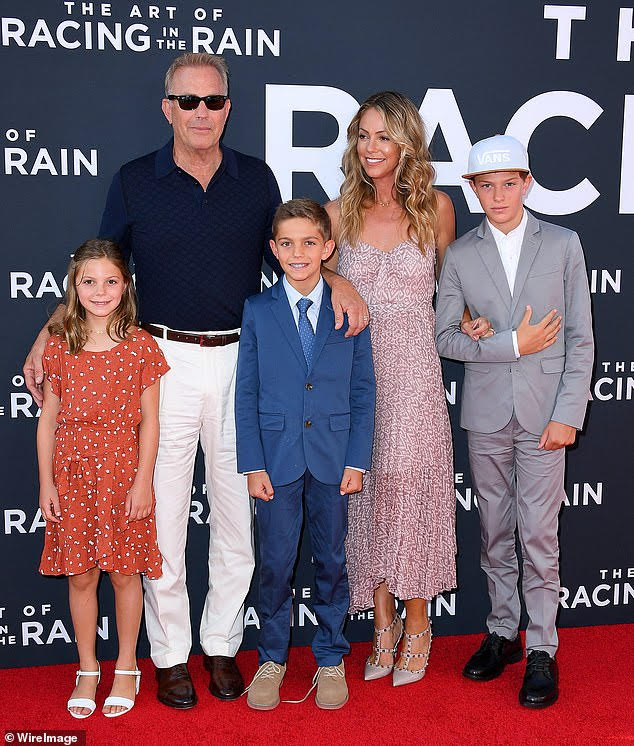 وحضر النجم كيفين كوستنر، البالغ من العمر 64عامًا، وهو يرتدي سروال ابيض وقميص أزرق مع كريستين بومغارتنر ، زوجته من 15 عامًا، بالإضافة إلى ثلاثة من أبنائه السبعة وهم كايدن ، 12 سنة ، هايز ، 10 سنوات ، وغريس ، 9 سنوات، يؤدي كوستنر، صوت إنزو الكلب الذي يريد أن يصبح انسانًا.