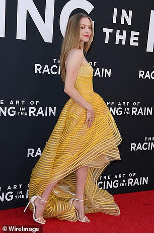 تألقت النجمة الشابة أماندا سيفر، البالغة من العمر33 عامًا، بفستان باللون الأصفر الأومبري في العرض الأول لفيلمها الجديد The Art Of Racing In The Rain ""، في دار عرض " الكابيتان" بلوس انجلوس.