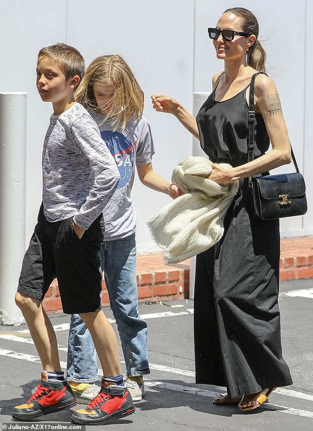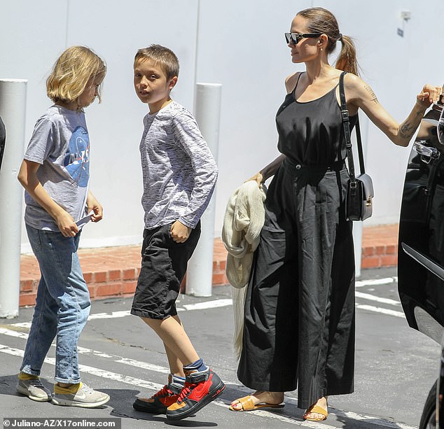 تألقت النجمة أنجلينا جولي، البالغة من العمر 44 عامًا، بارتداء جمبسوت لونه أسود، أثناء قيامها بجولة تسوق مع توأميها نوكس وفيفيان البالغين من العمر 11 عامًا في مدينة لوس انجلوس.