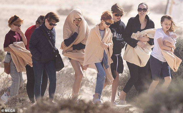 استمتعت النجمة "أنجلينا جولي" بنزهة نهارية مع أطفالها الأربعة على شاطىء البحر في جزر الكناري خلال نهاية الأسبوع.